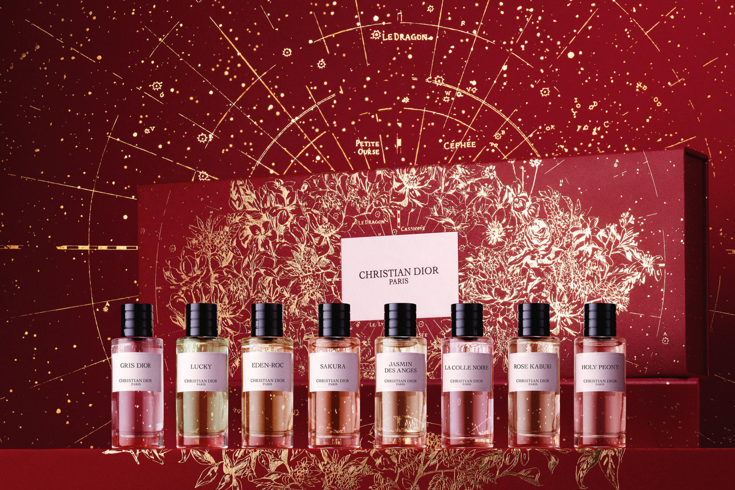 Give this fragrance discovery set as a gift along with your wishes of good luck, and celebrate a new year guided by your Dior lucky star. Inside, discover 8 iconic fragrances from La Collection Privée Christian Dior in 7.5 ml bottles: Gris Dior, Lucky, Eden-Roc, Sakura, Jasmin des Anges, La Colle Noire, Rose Kabuki and Holy Peony.