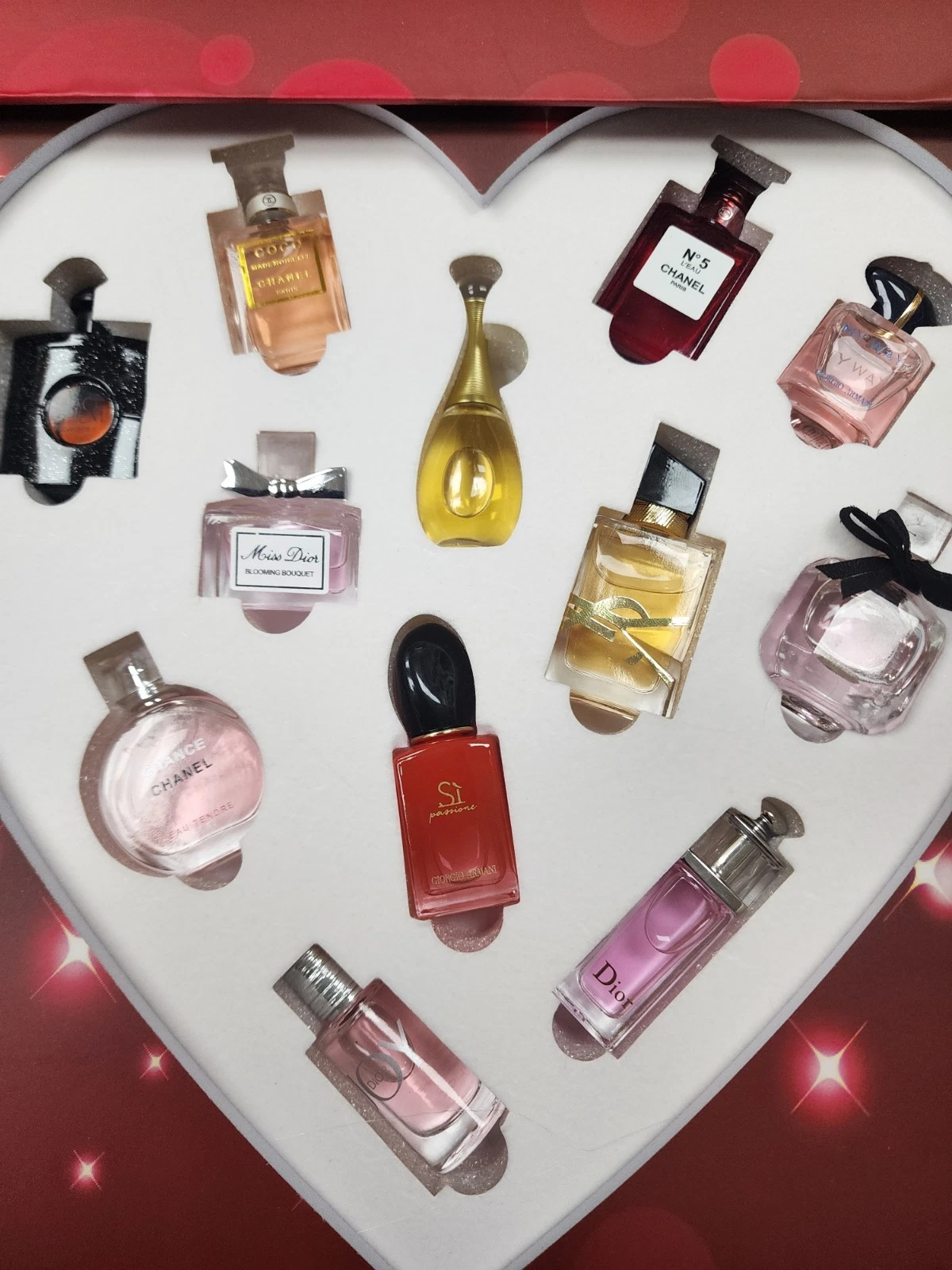 In the set with 12 different types of mini perfumes you will find the following:
